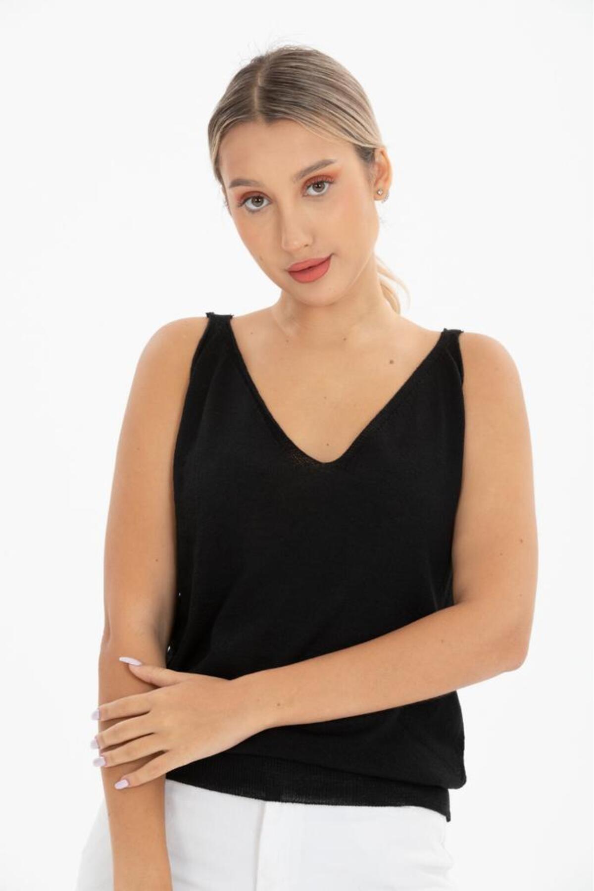Kadin Atlet Merserize Rahat Kalıp Ön Ve Arka V Yaka Askılı Atlet