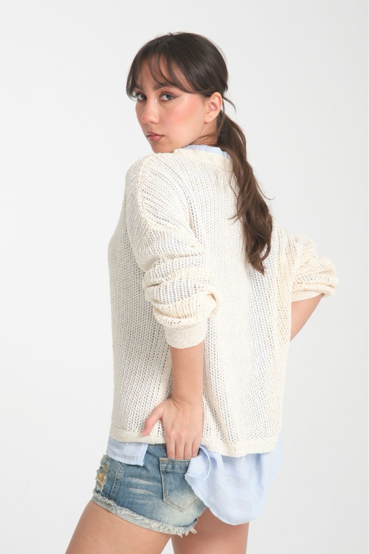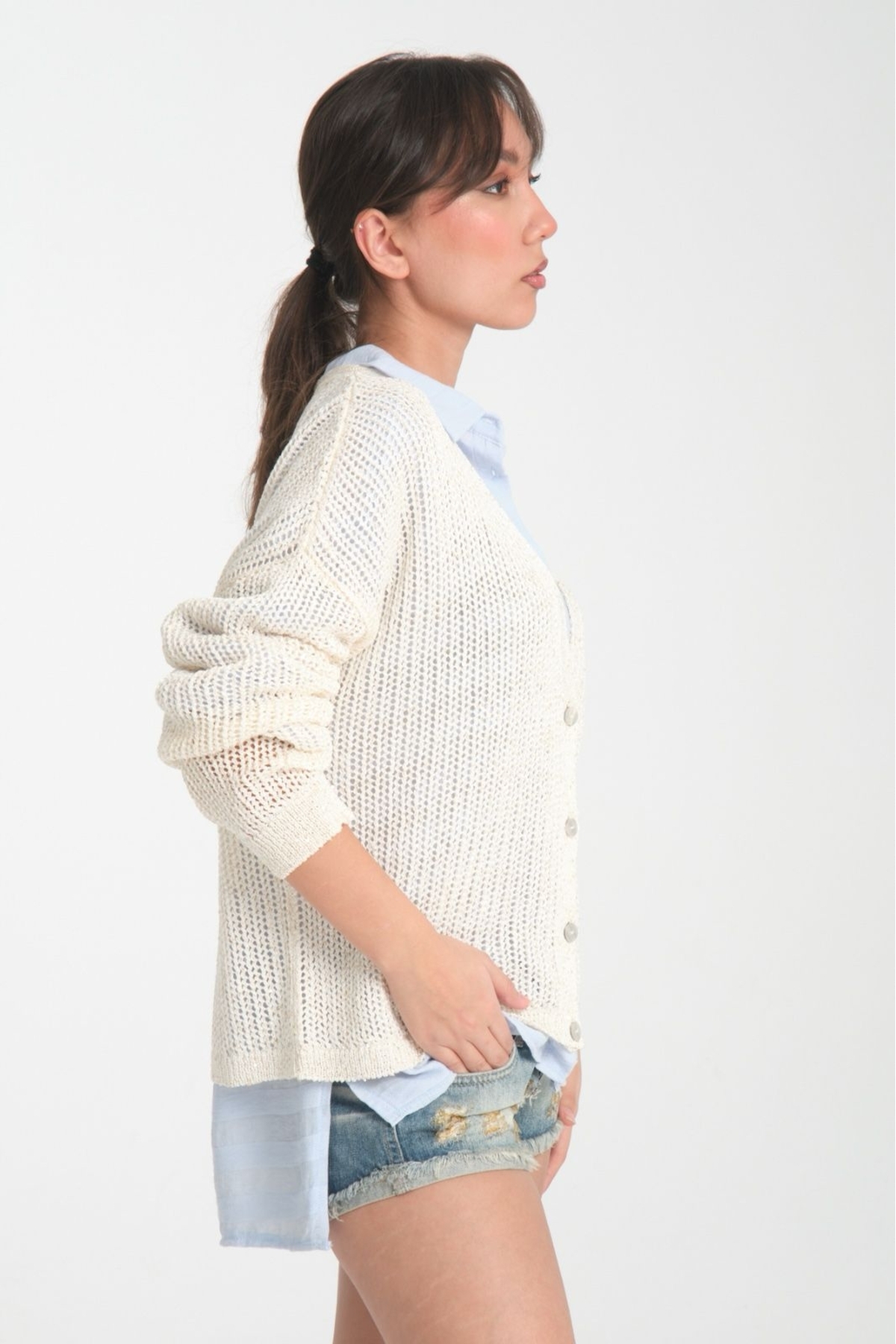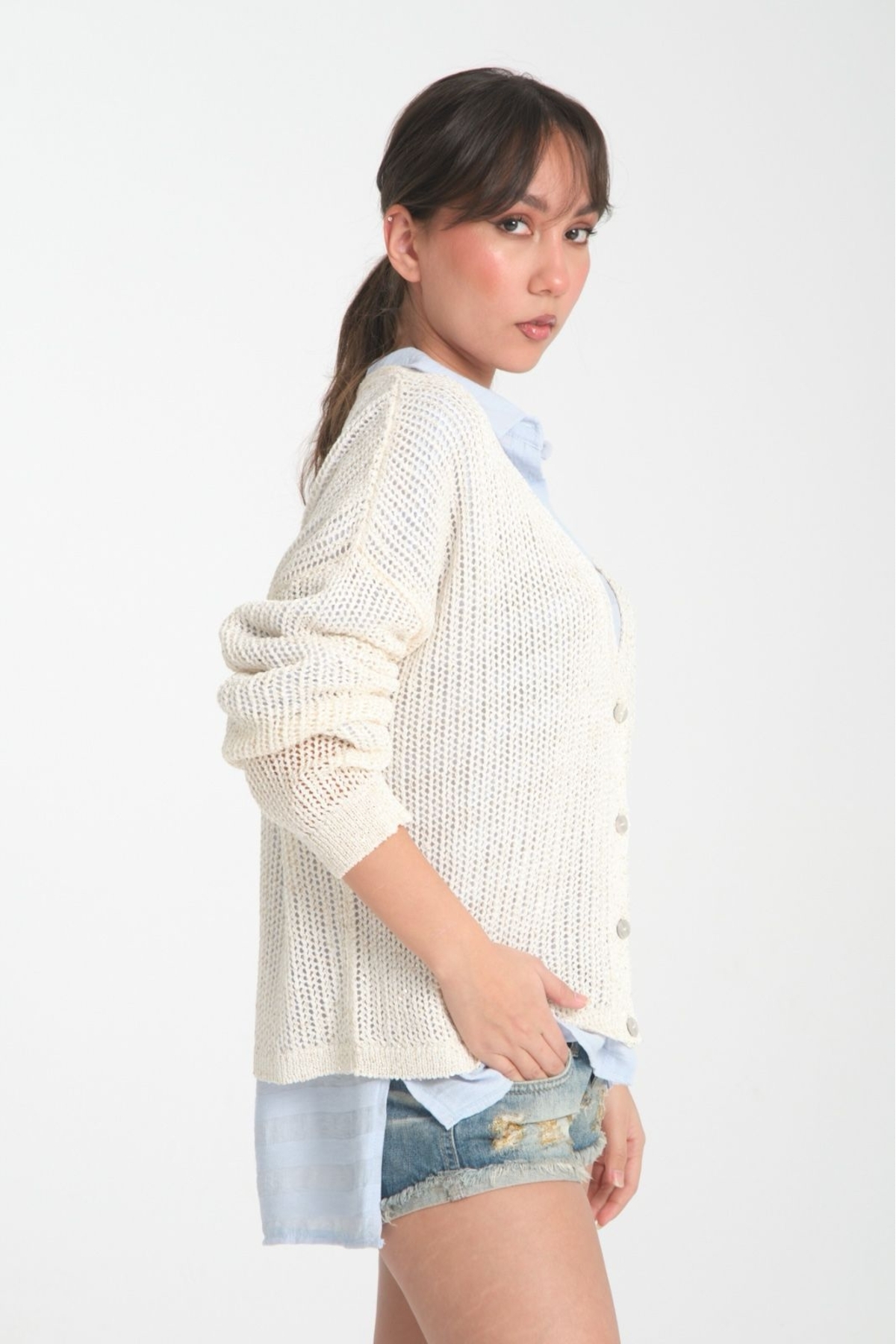 kadın hırka ince pullu v yaka düğmeli rahat kalıp şık hırka