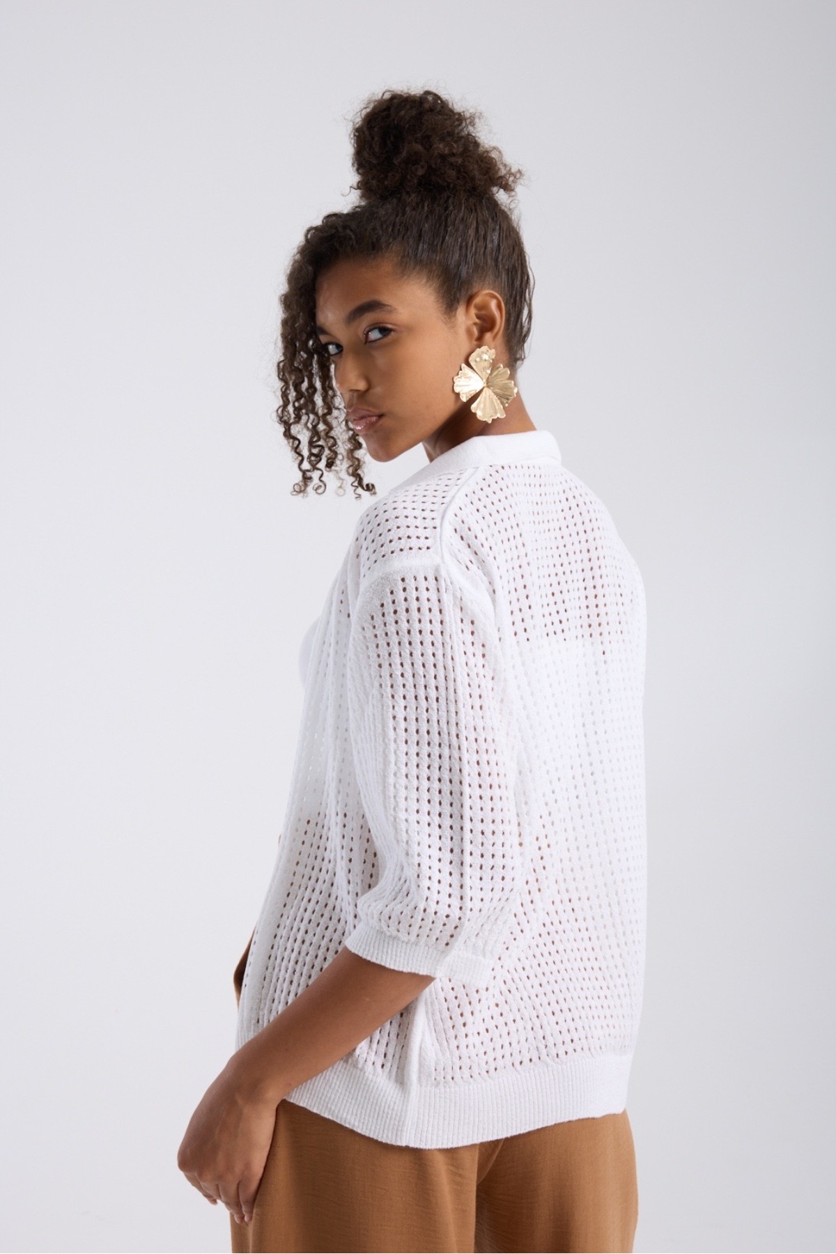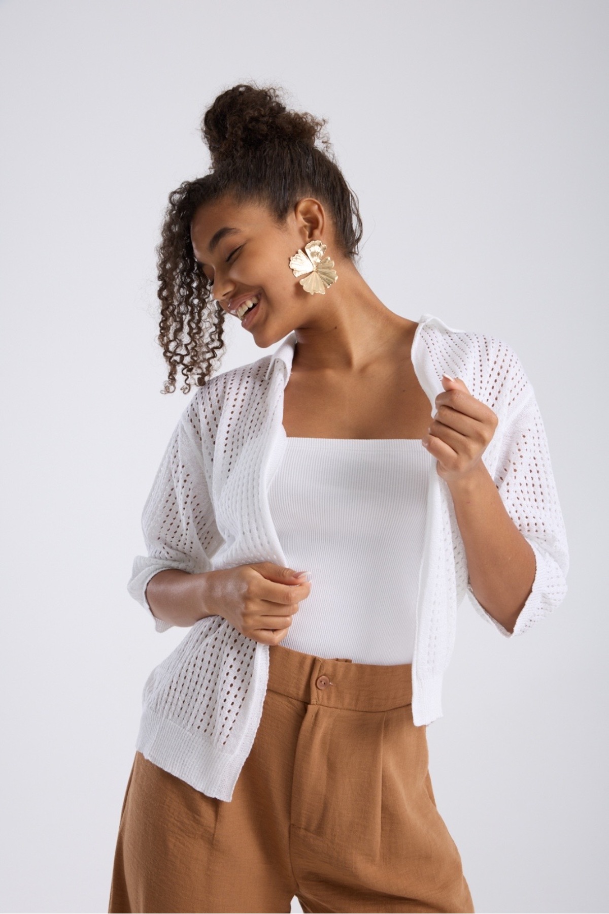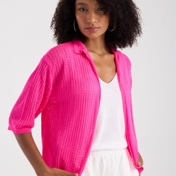 kadın hırka yazlık ince delikli önü açık kapri kol rahat kalıp