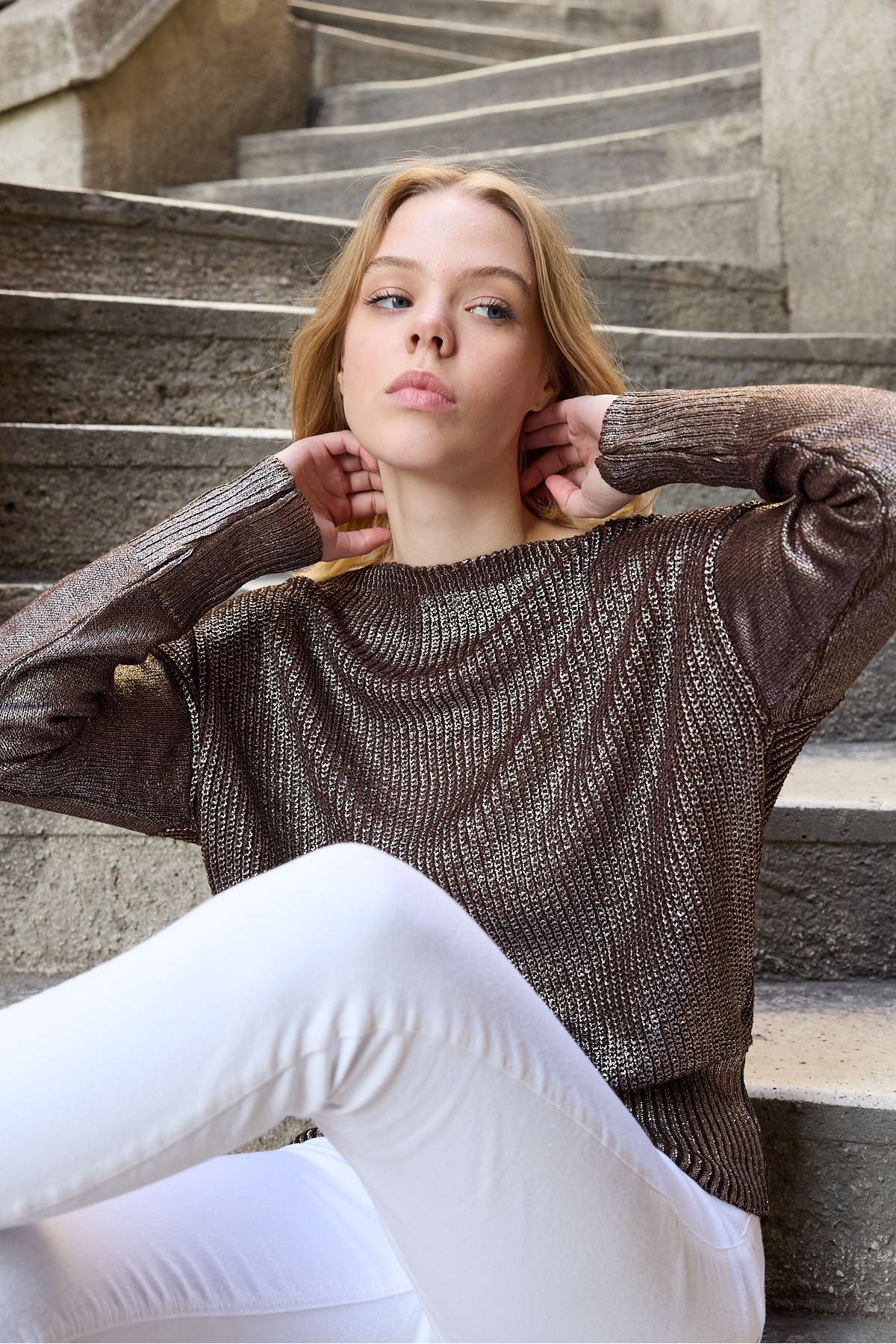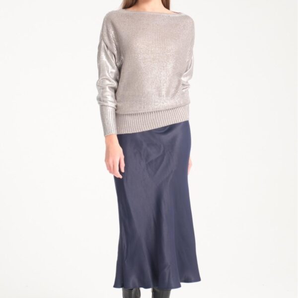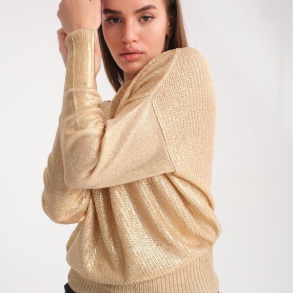 Kadın kazak parlak varak baskı ışıltılı triko Uzunkol şık kazak