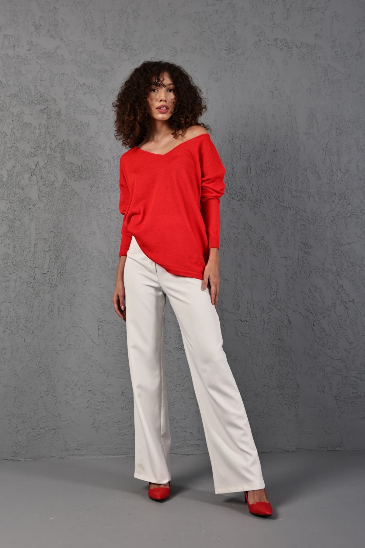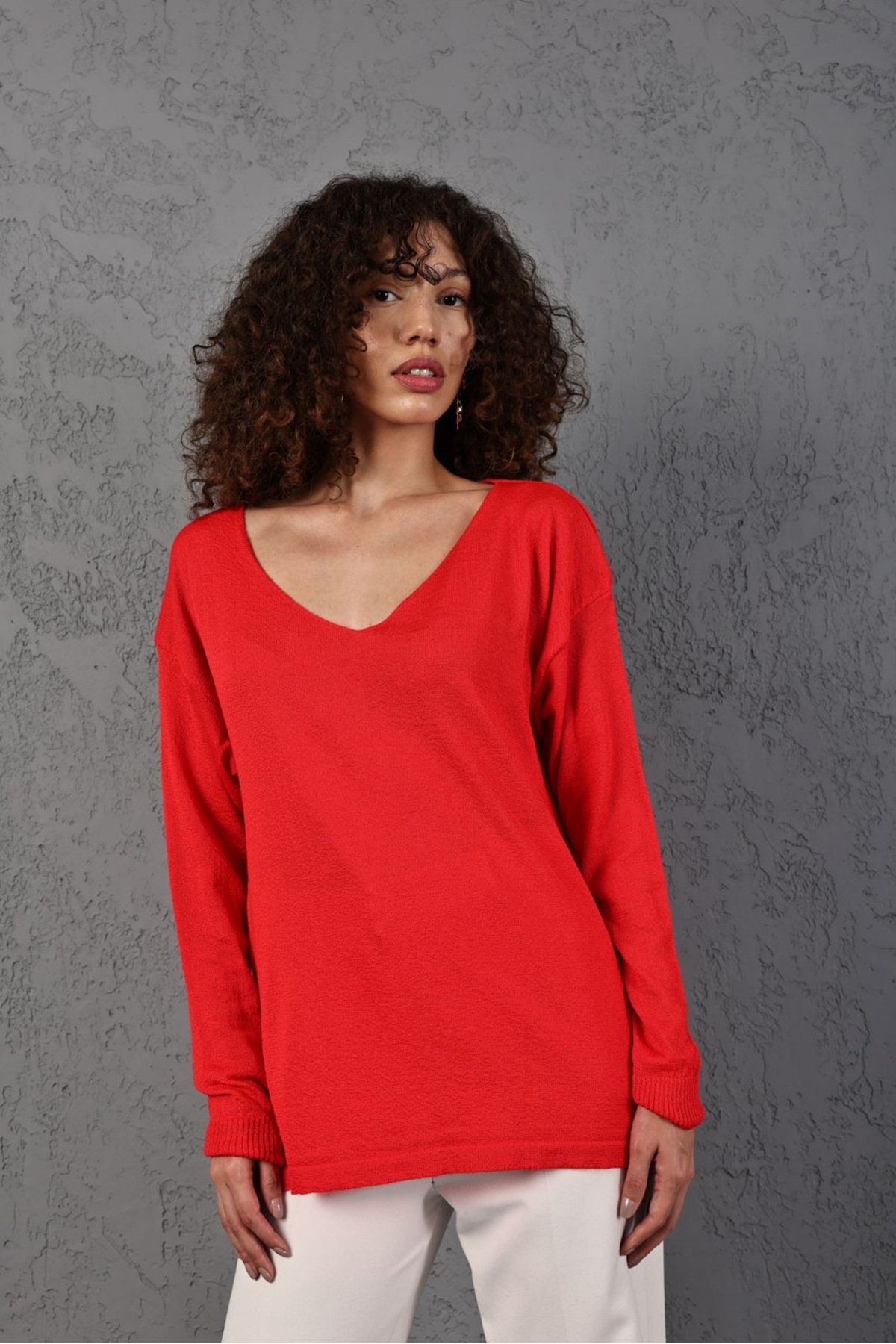 Kadın Triko Kazak V yaka Basic Yumuşak Doku Merserize Trend Ofis Şıklığı