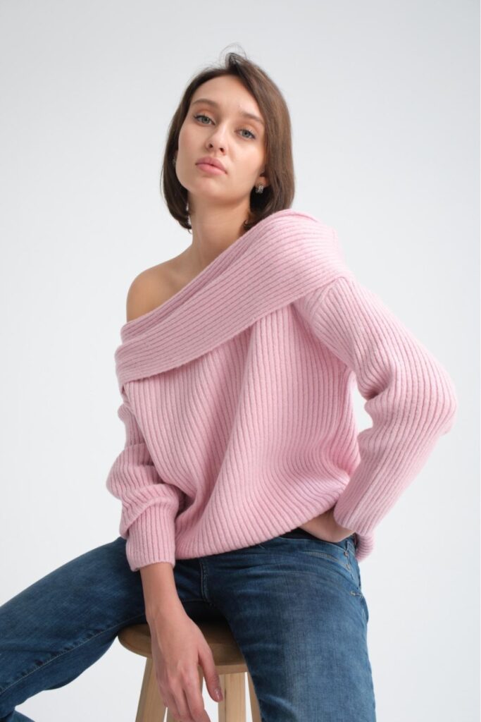 Kadın Triko Kazak V yaka Basic Yumuşak Doku Merserize Trend Ofis Şıklığı