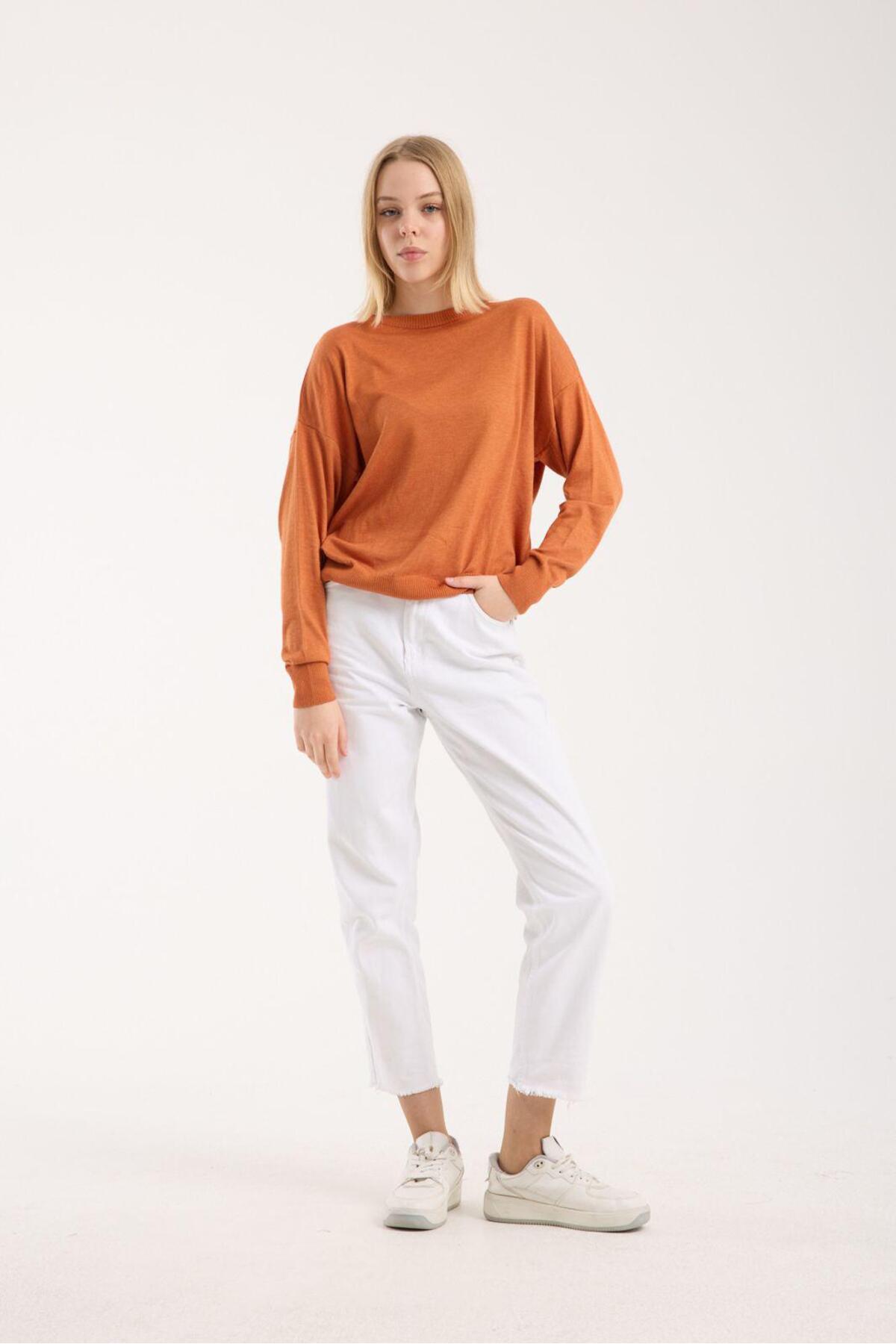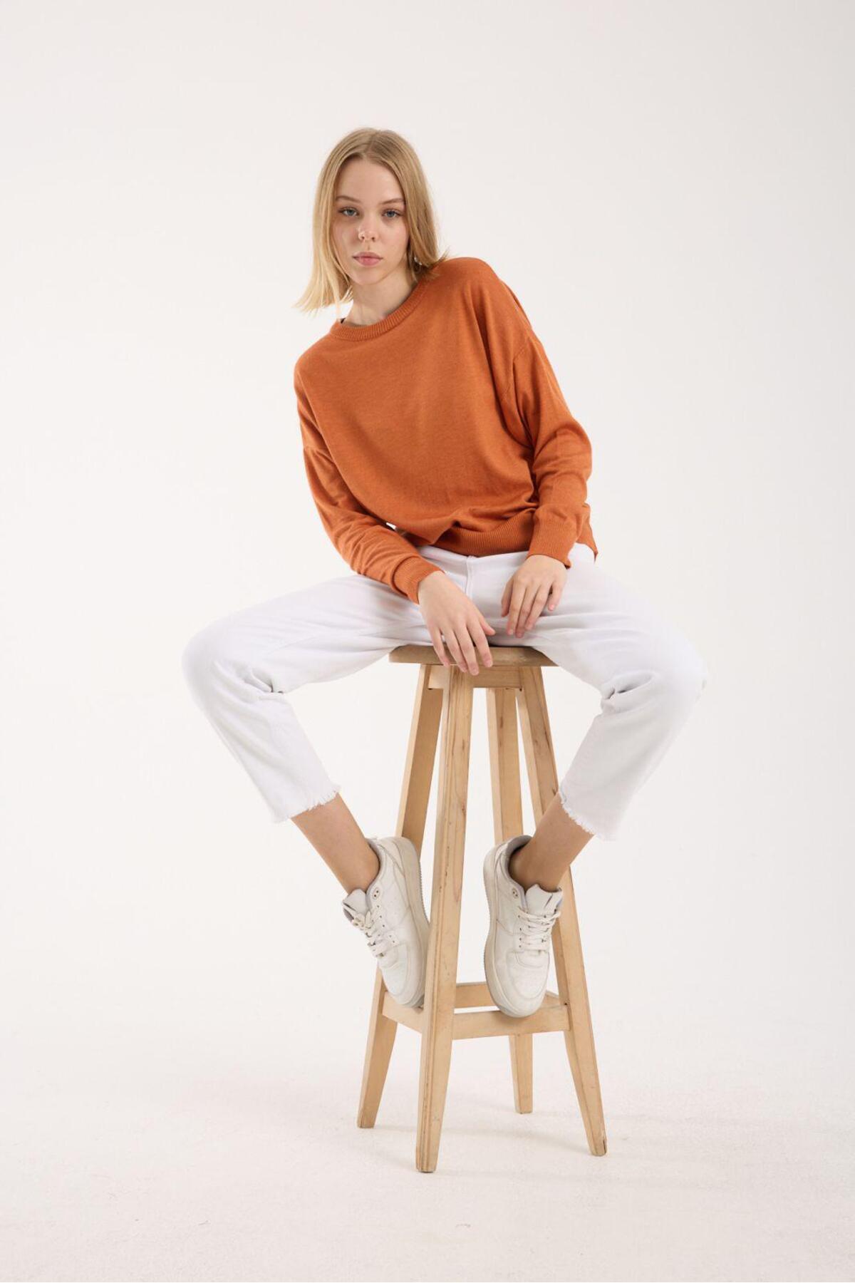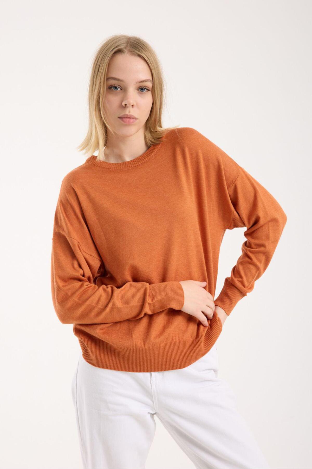 Kadın triko kazak yumuşak doku bisiklet yaka basic