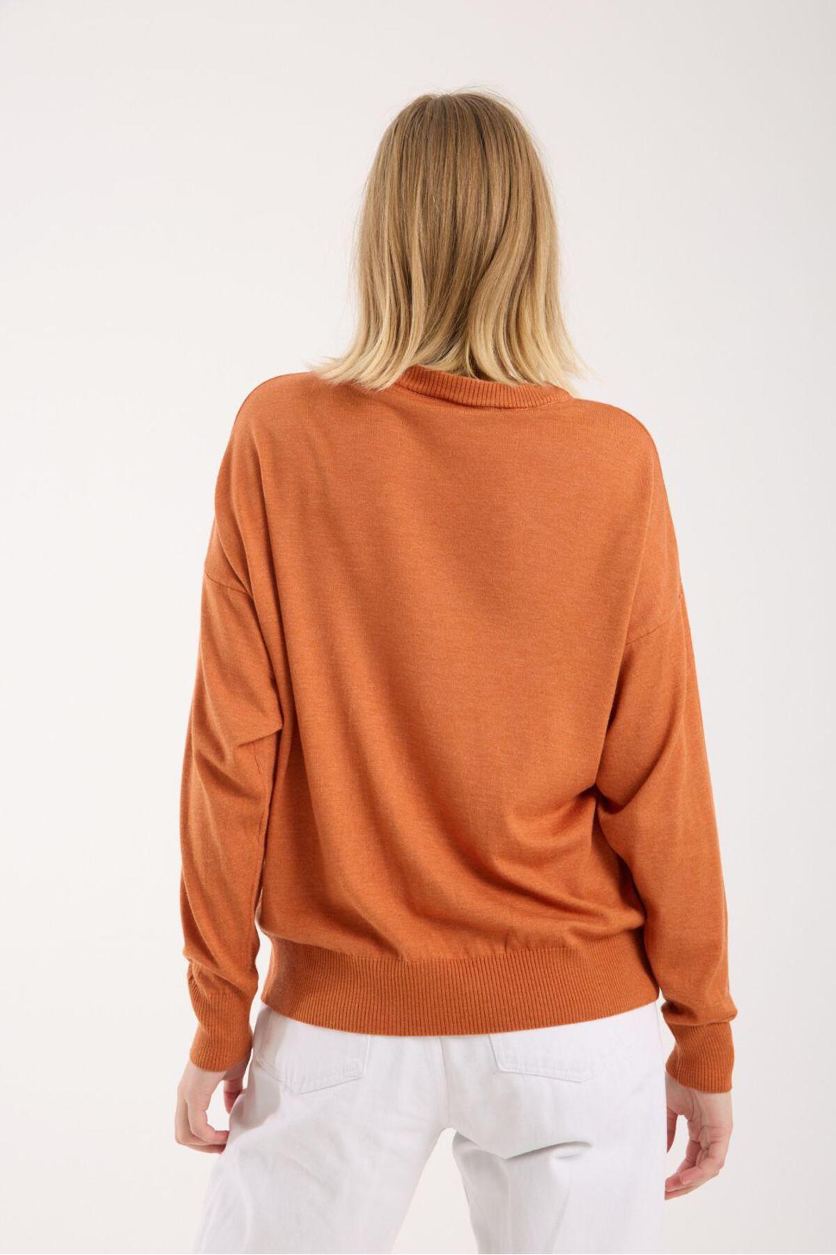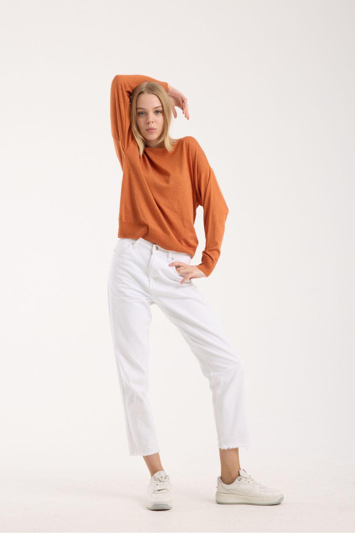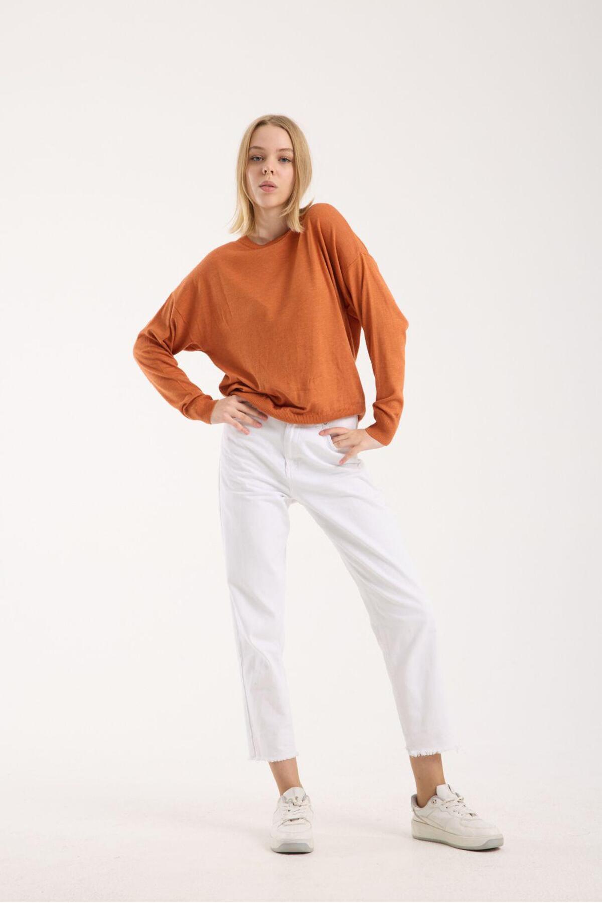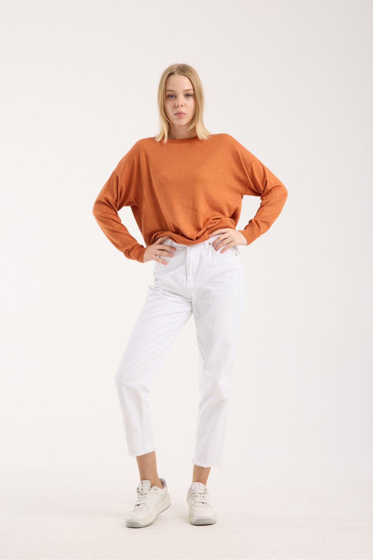Kadın triko kazak yumuşak doku bisiklet yaka basic