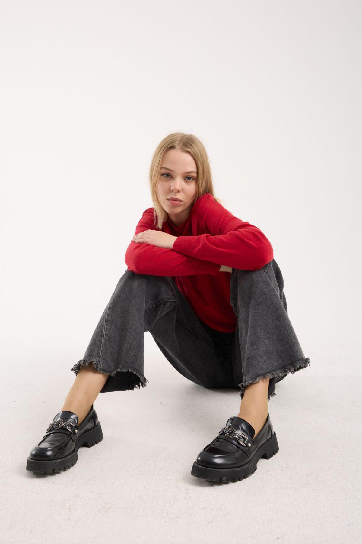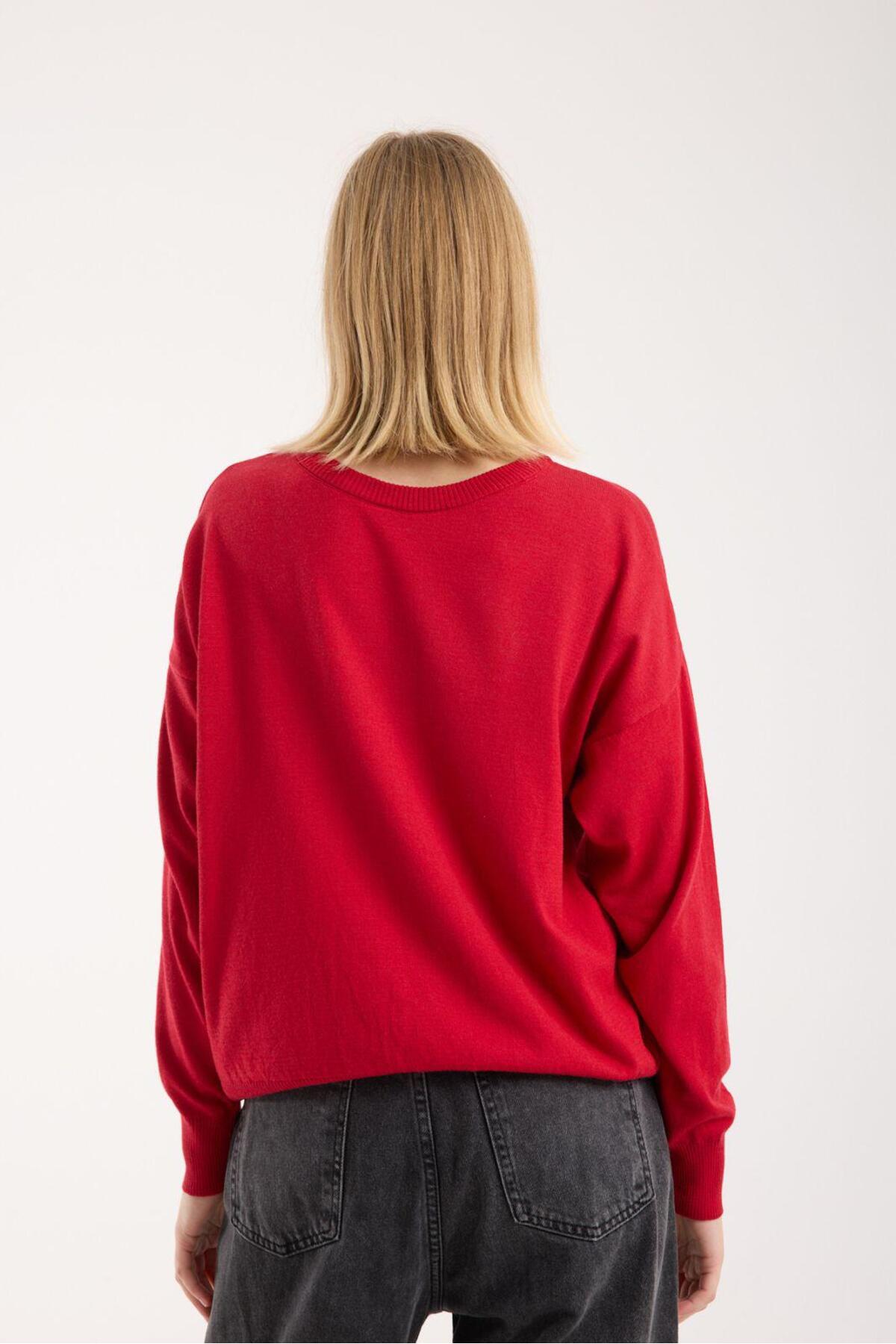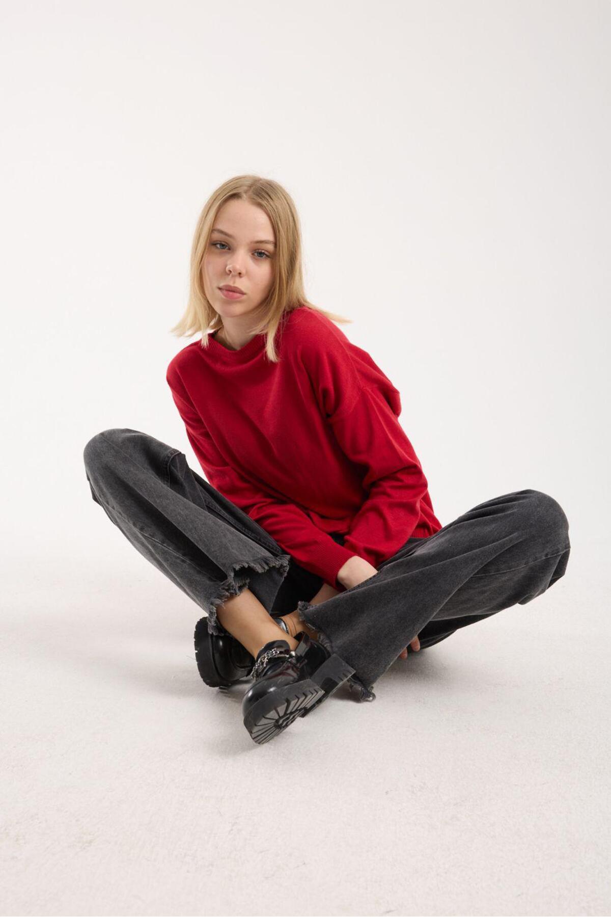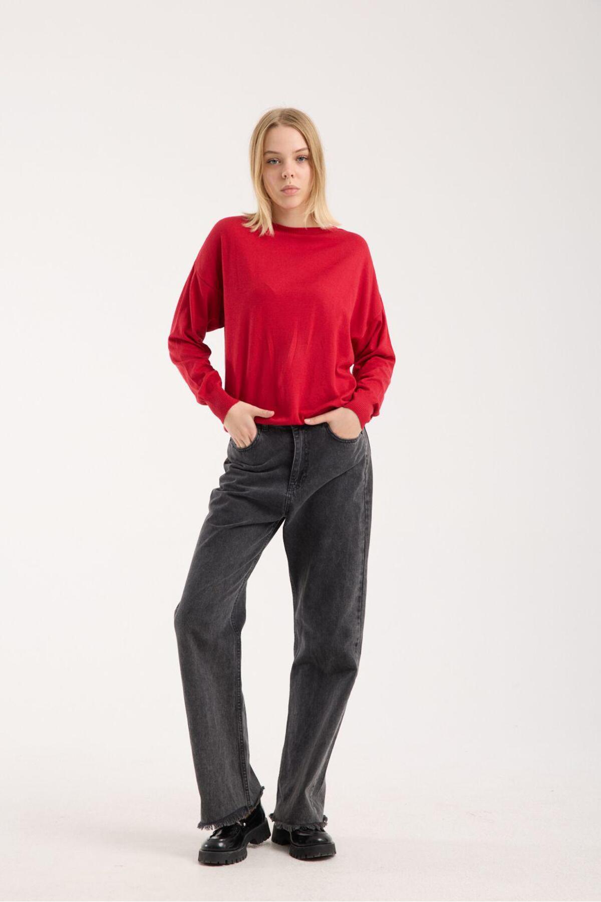 Kadın triko kazak yumuşak doku bisiklet yaka basic