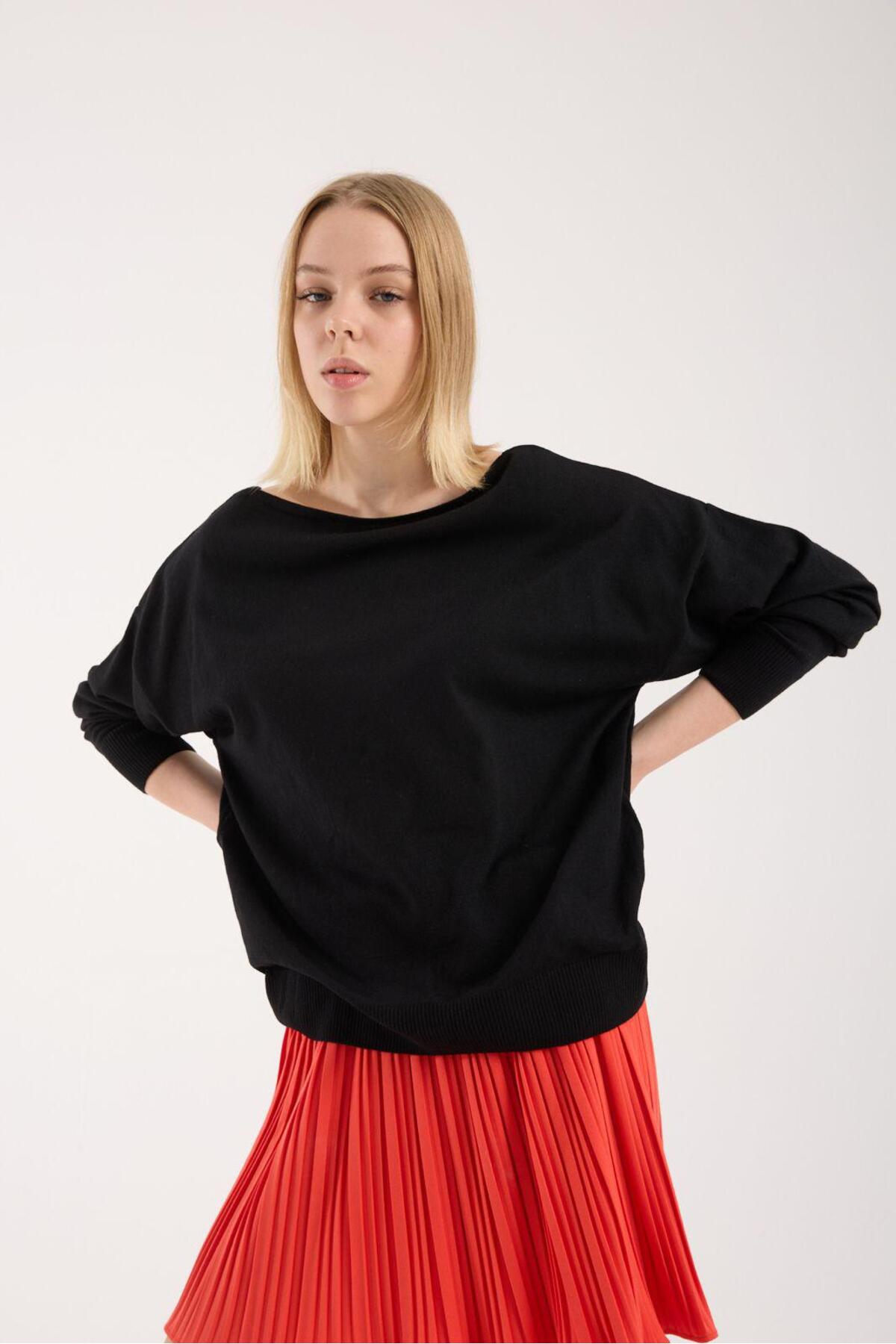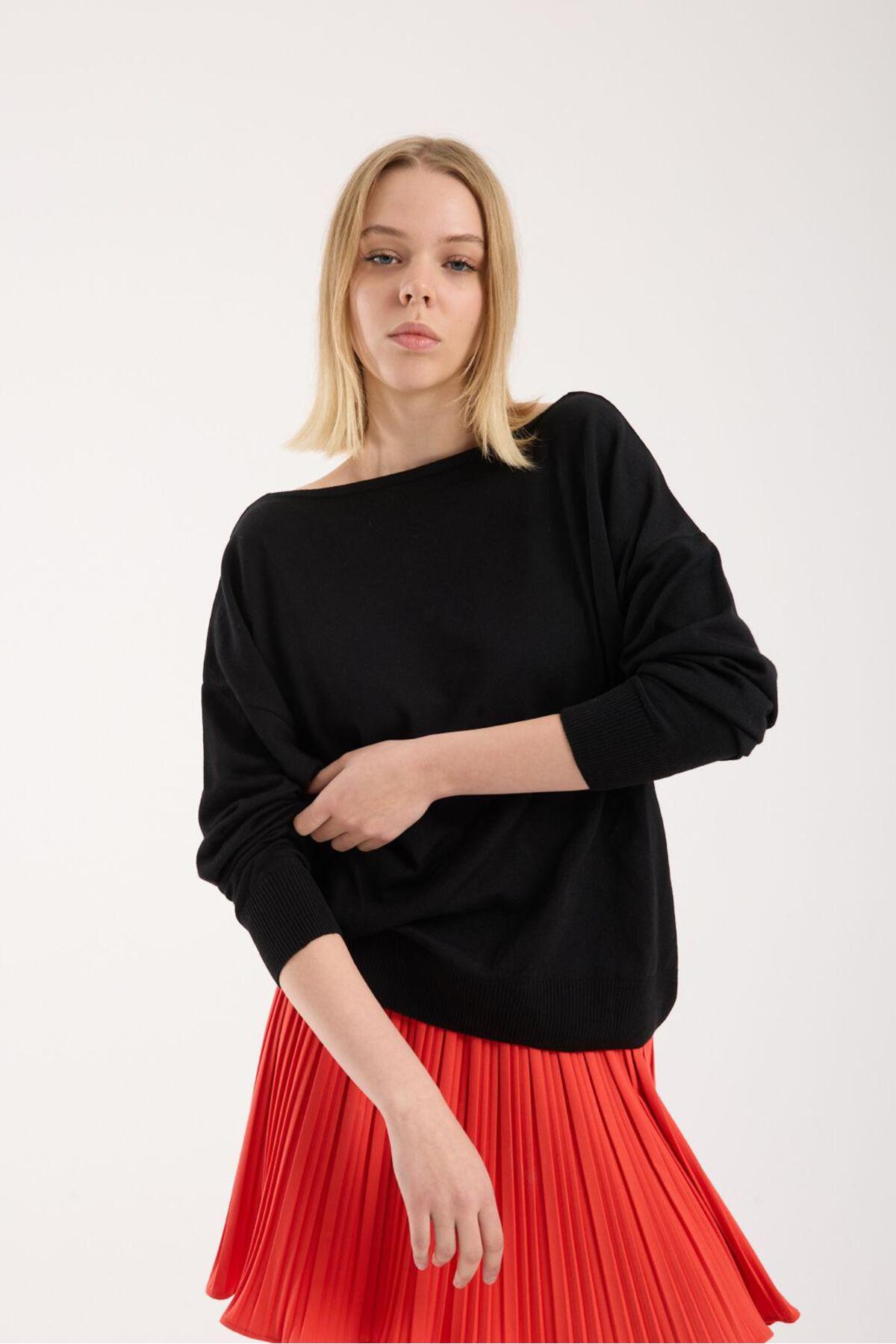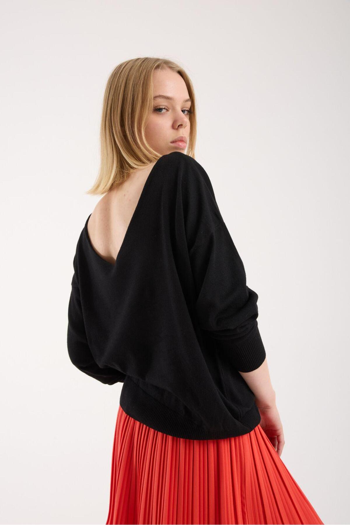 Kadın triko kazak yumuşak doku kayık yaka sırt dekolteli basic