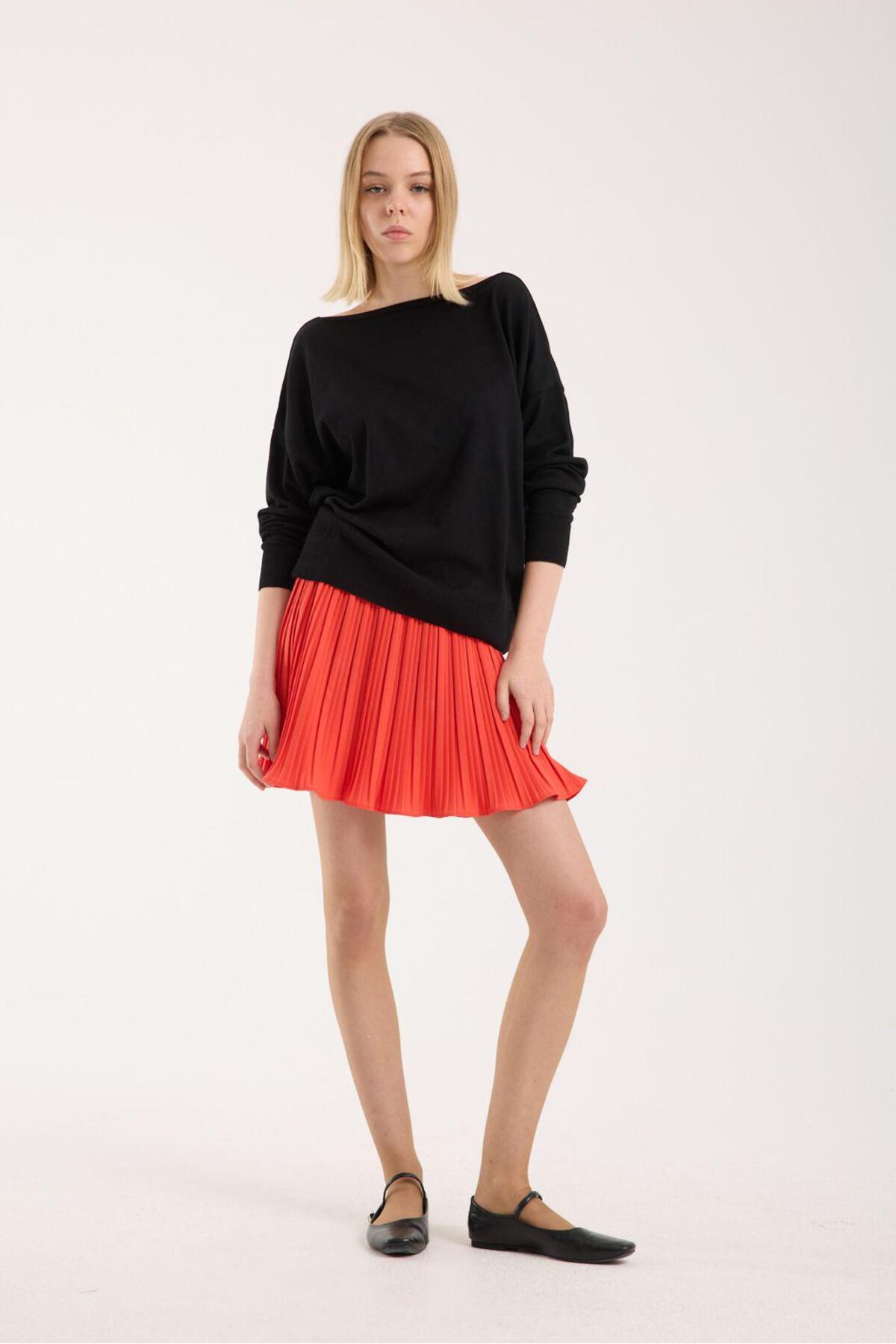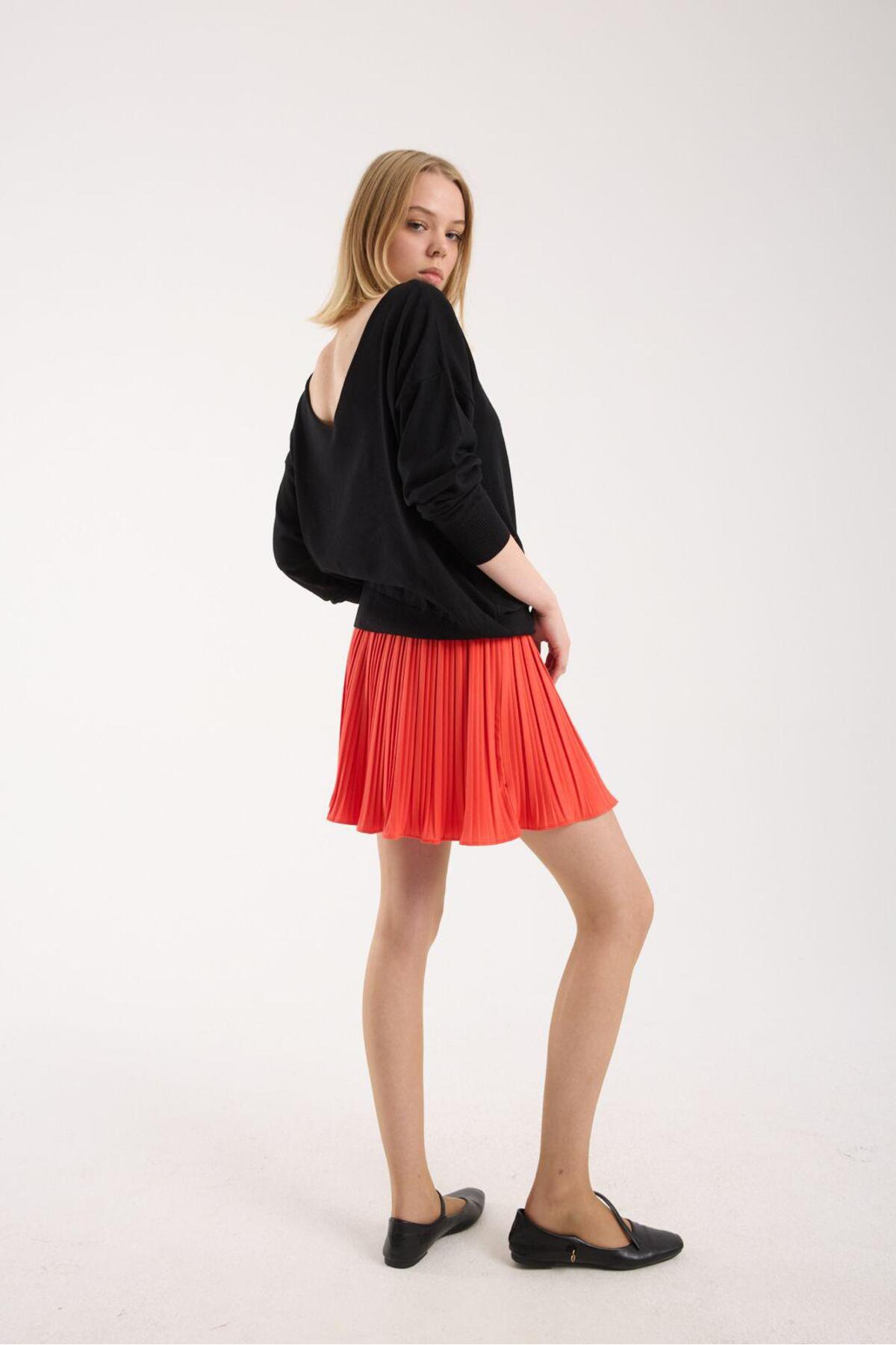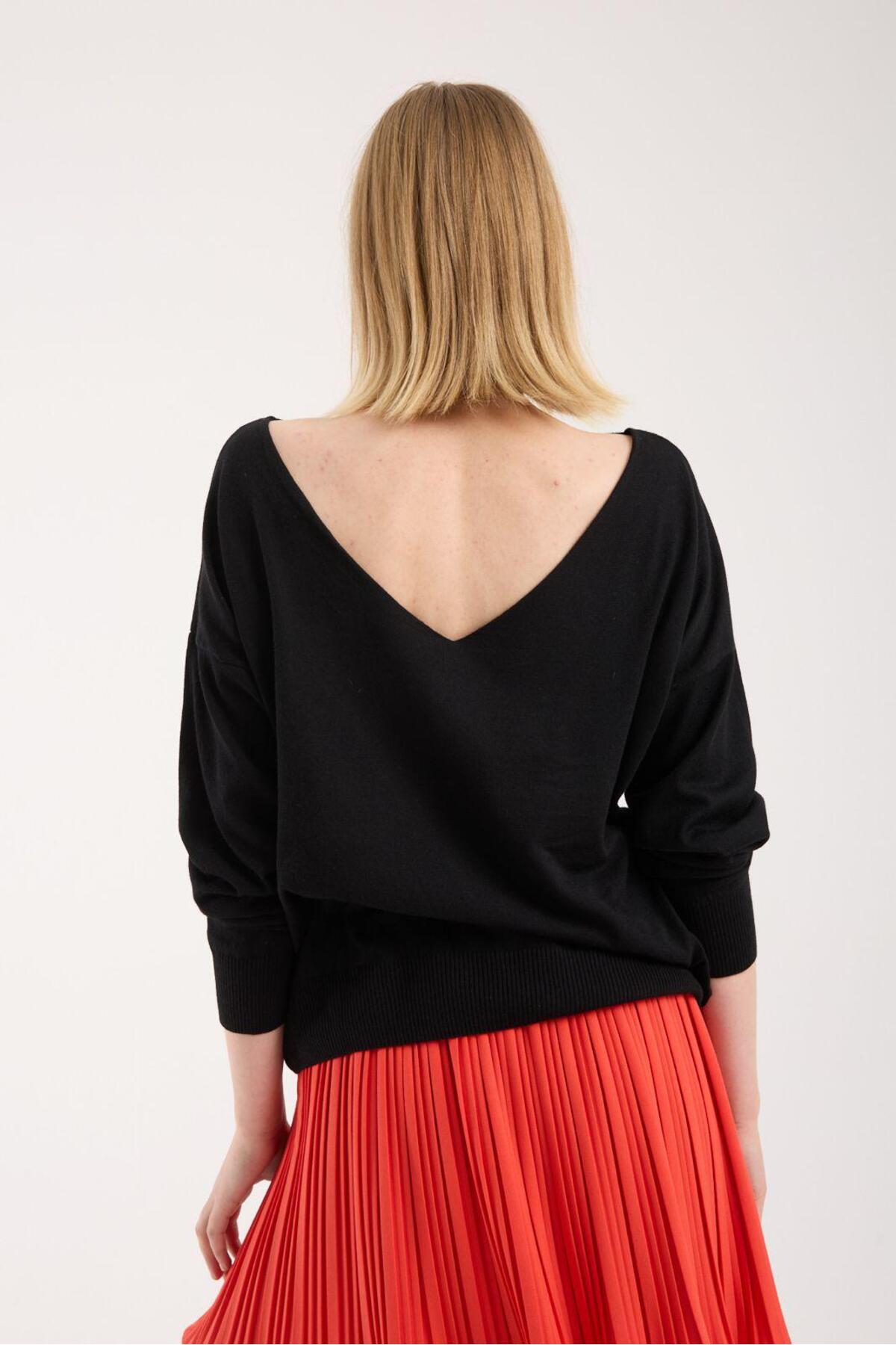 Kadın triko kazak yumuşak doku kayık yaka sırt dekolteli basic