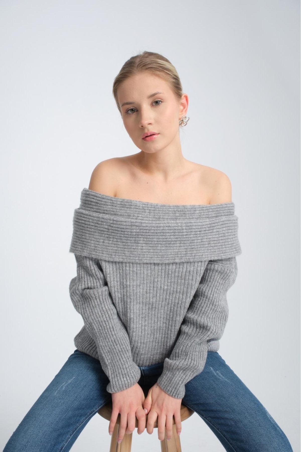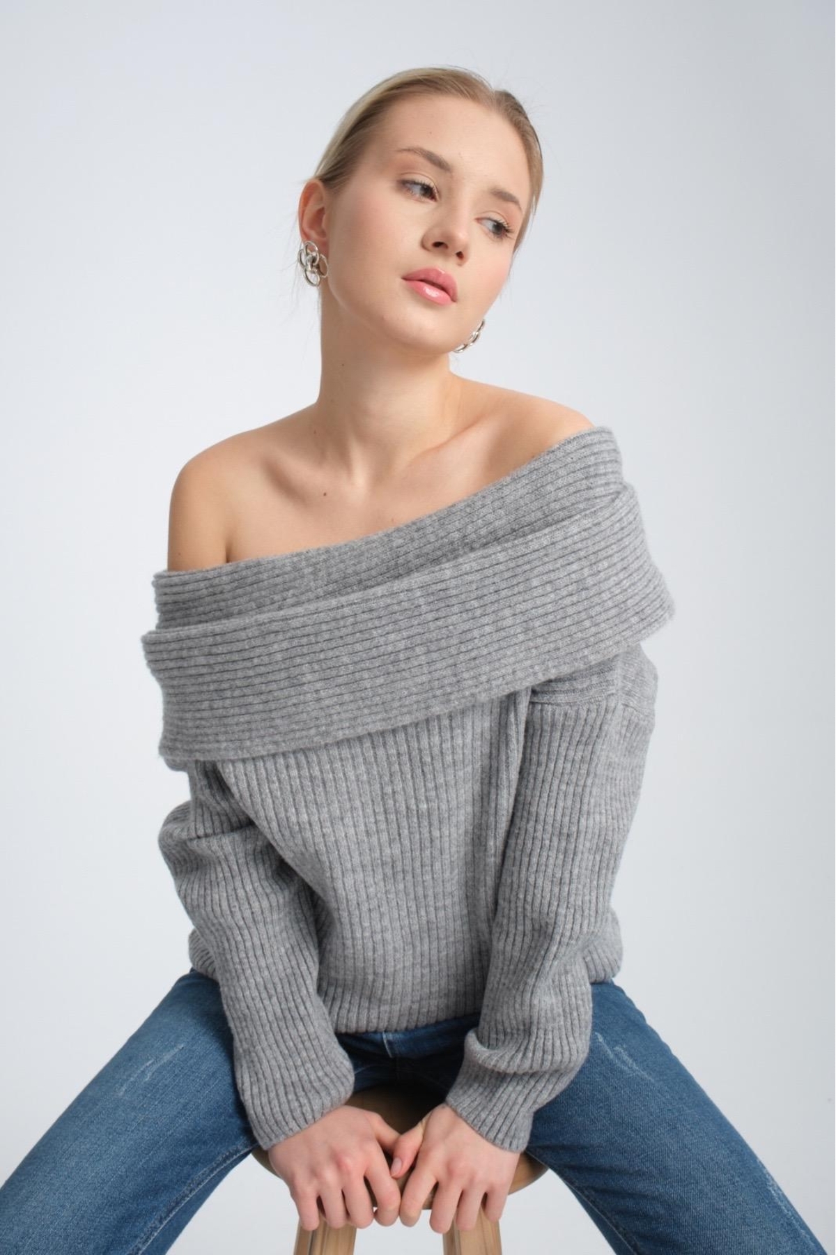 kadın yumoş kalın yumuşak Madonna yaka şık triko uzun kol kazak