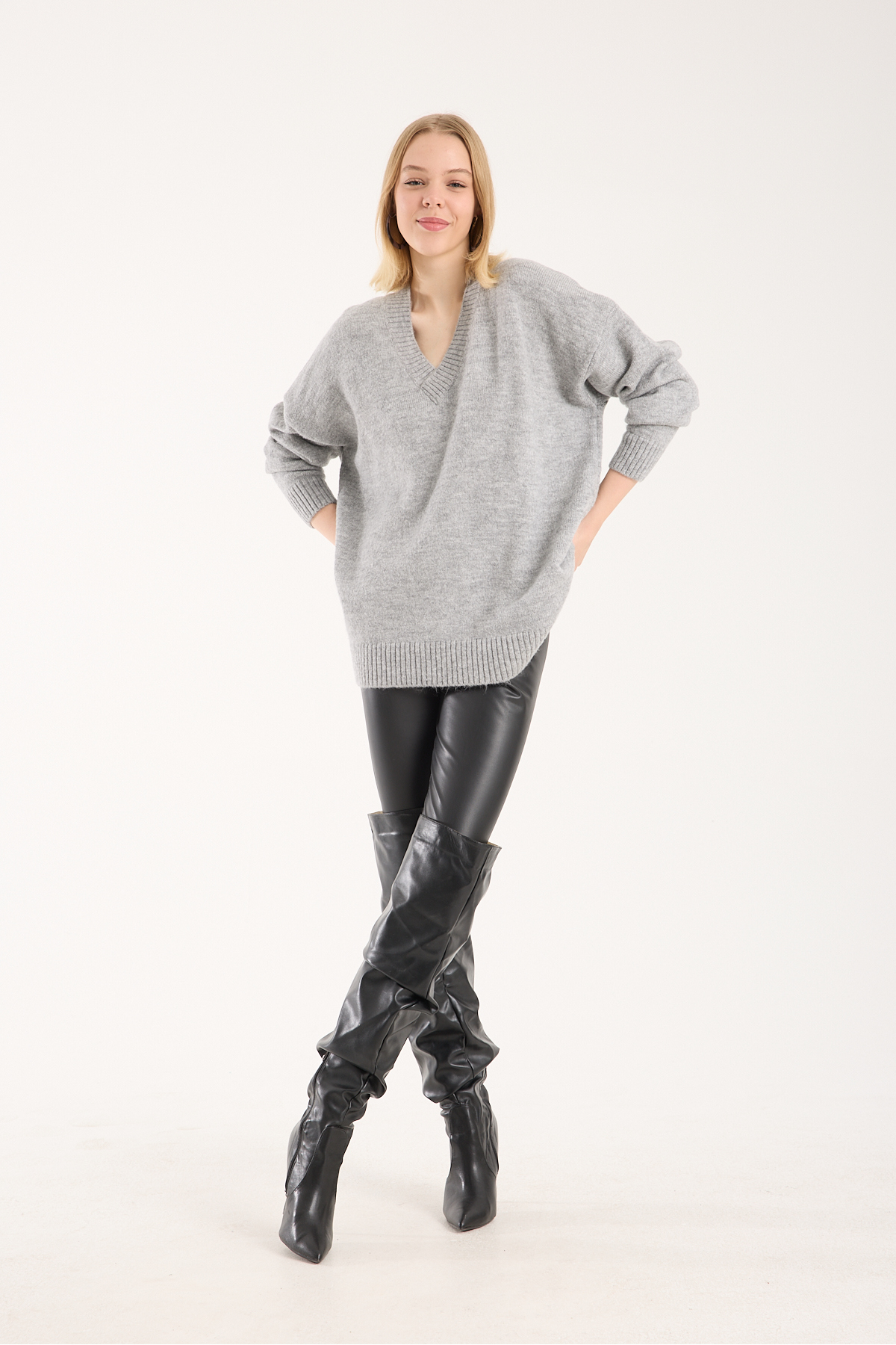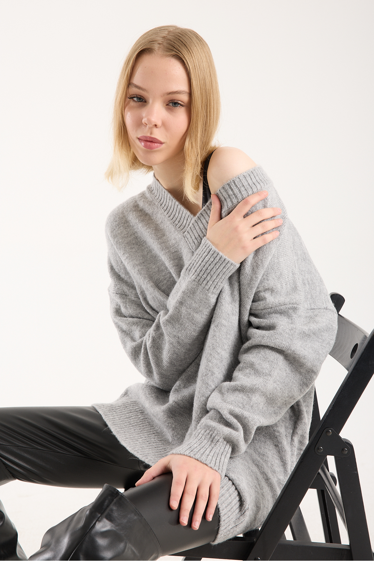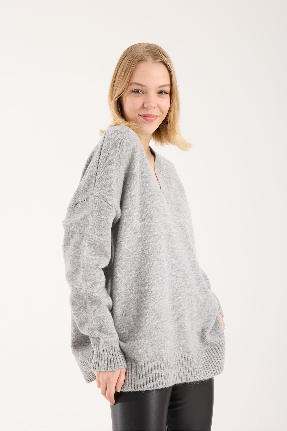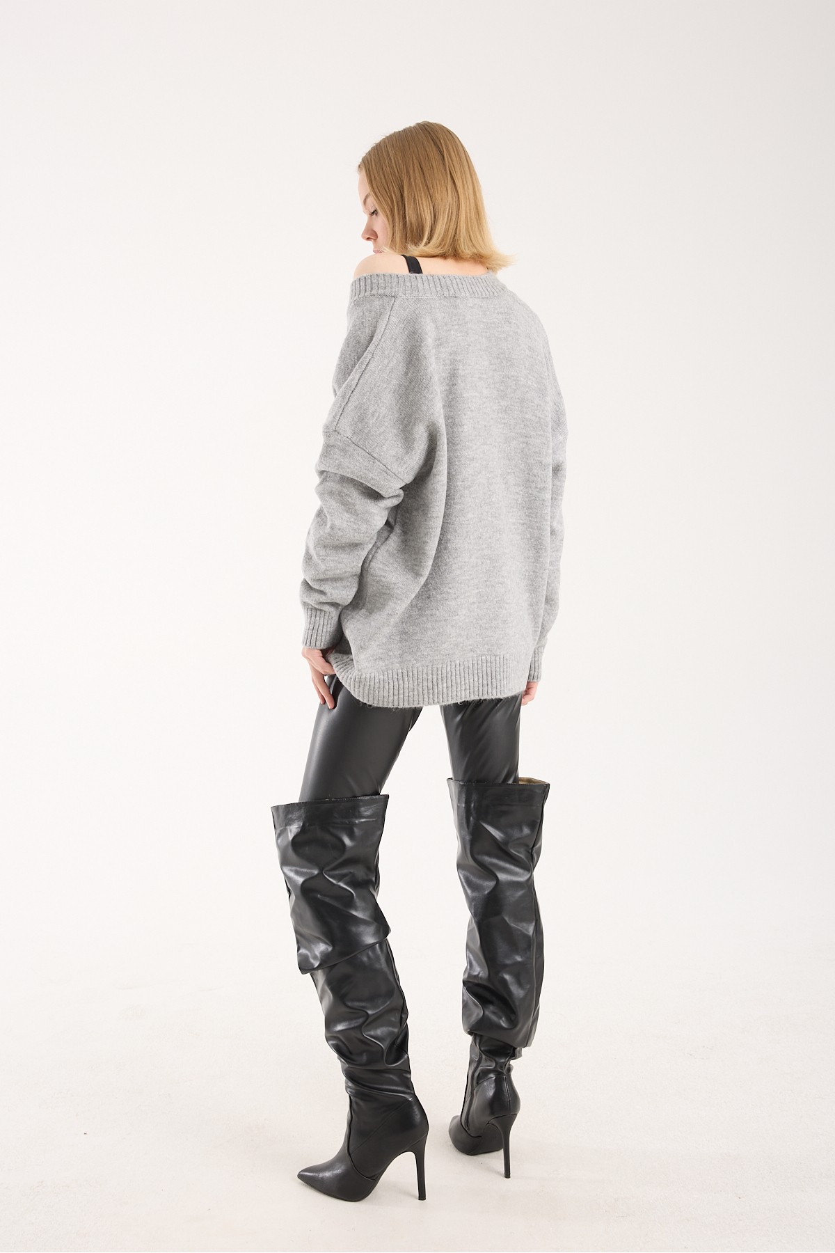 yumoş ip oversize kadın kazak geniş yaka