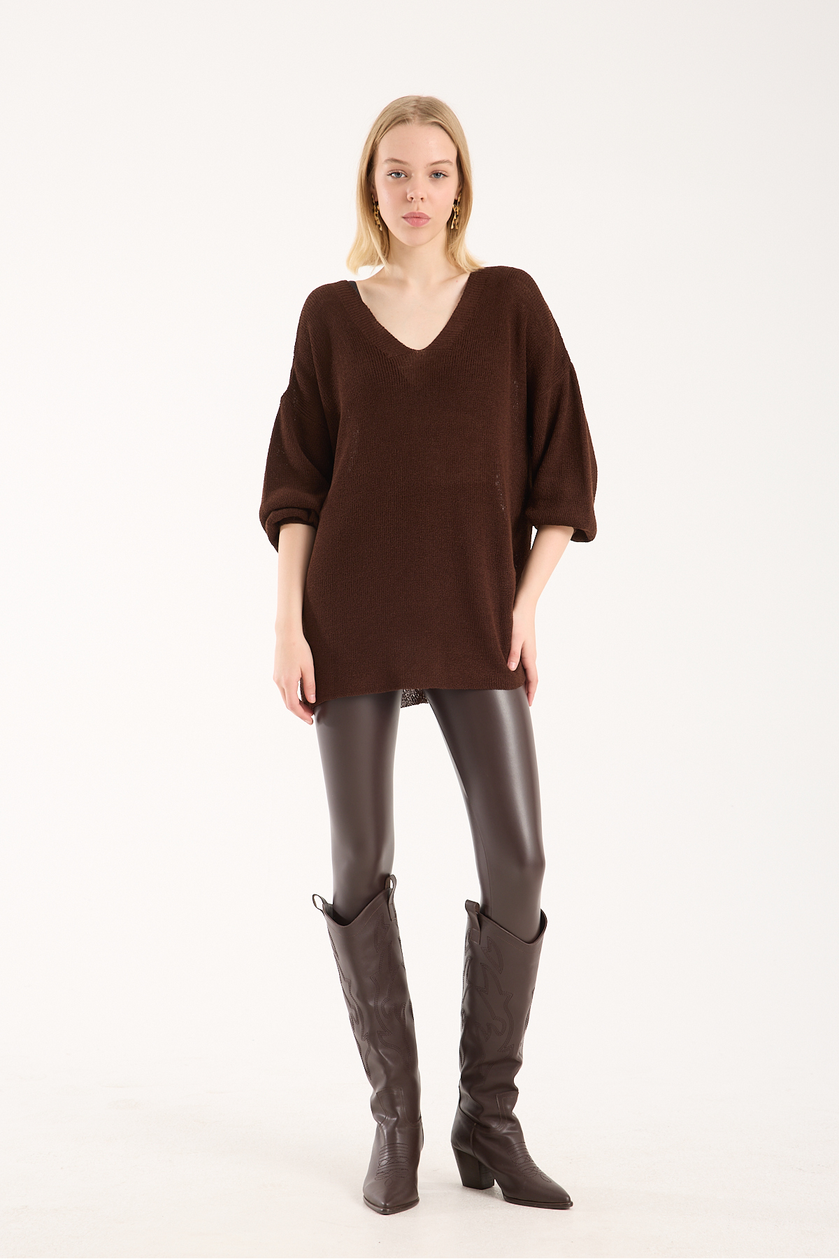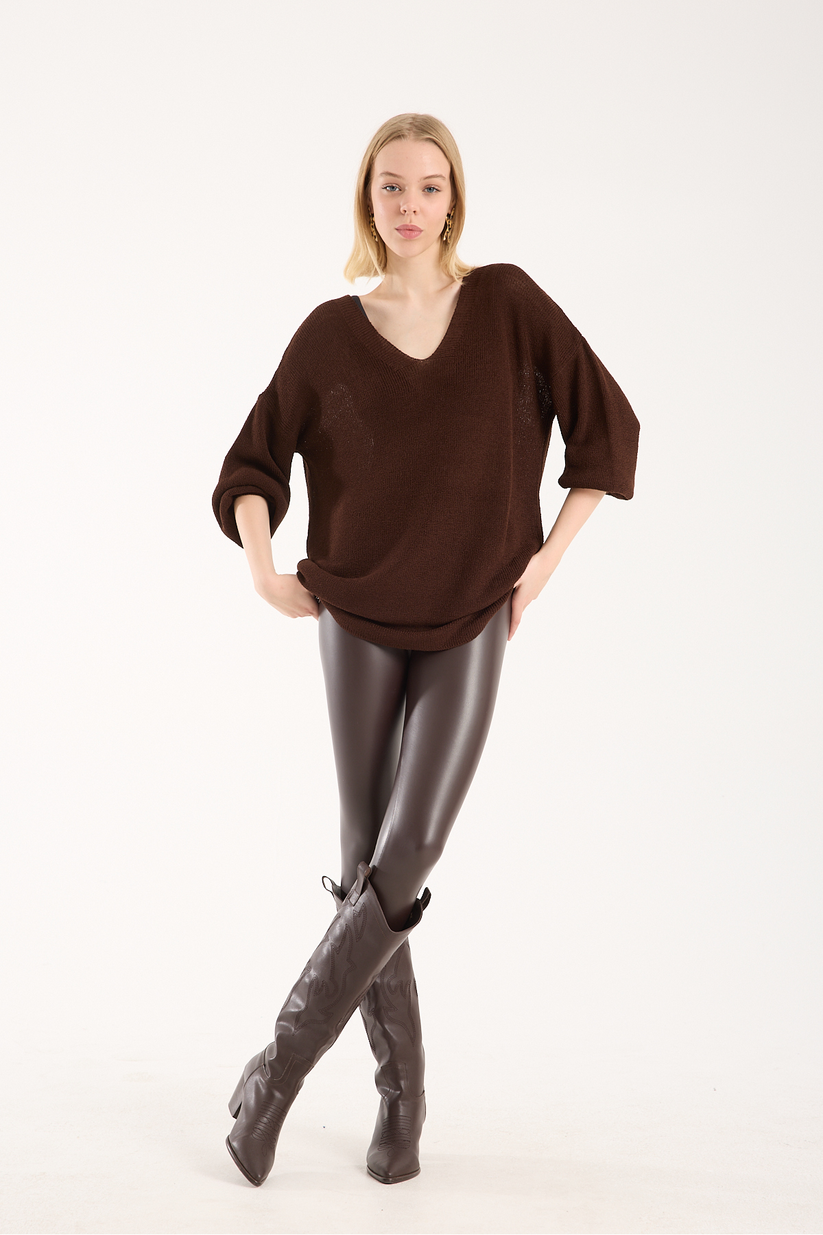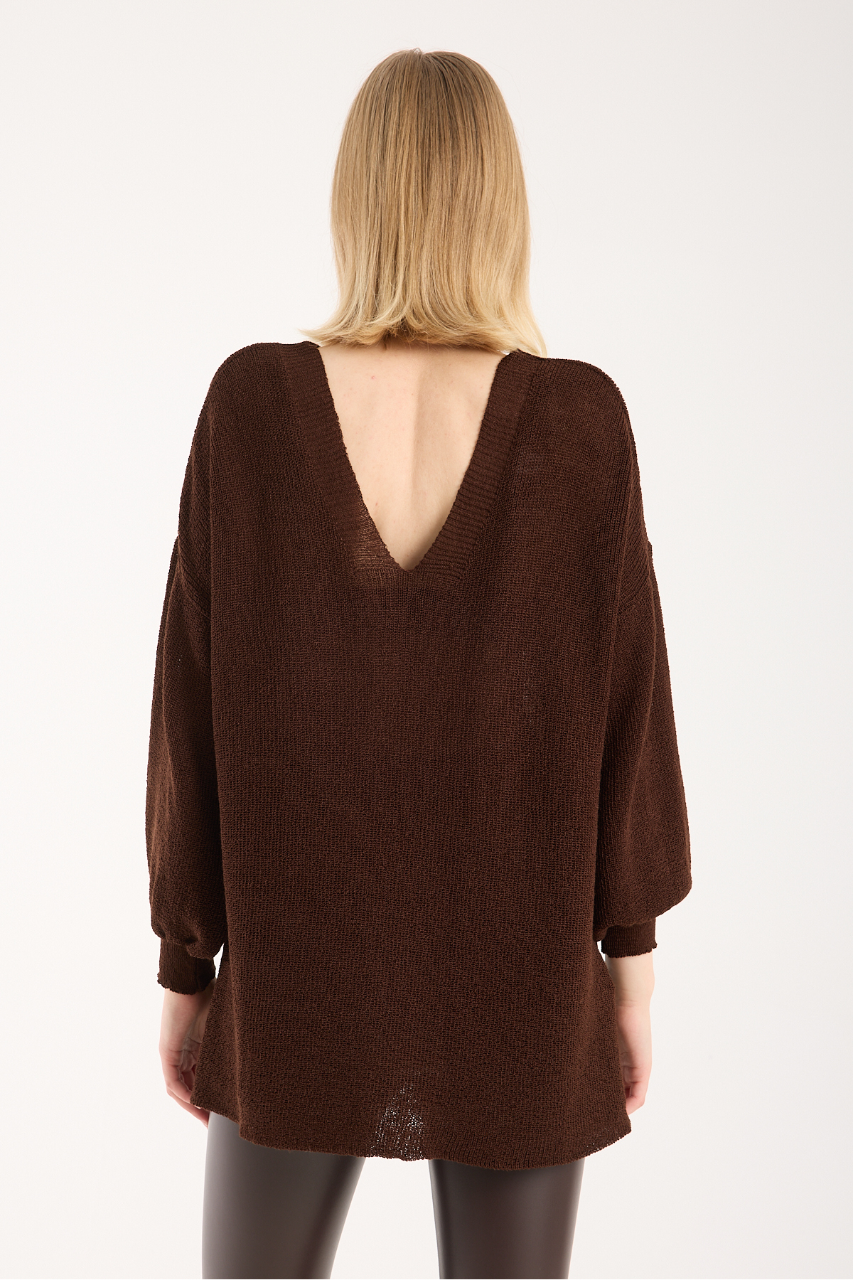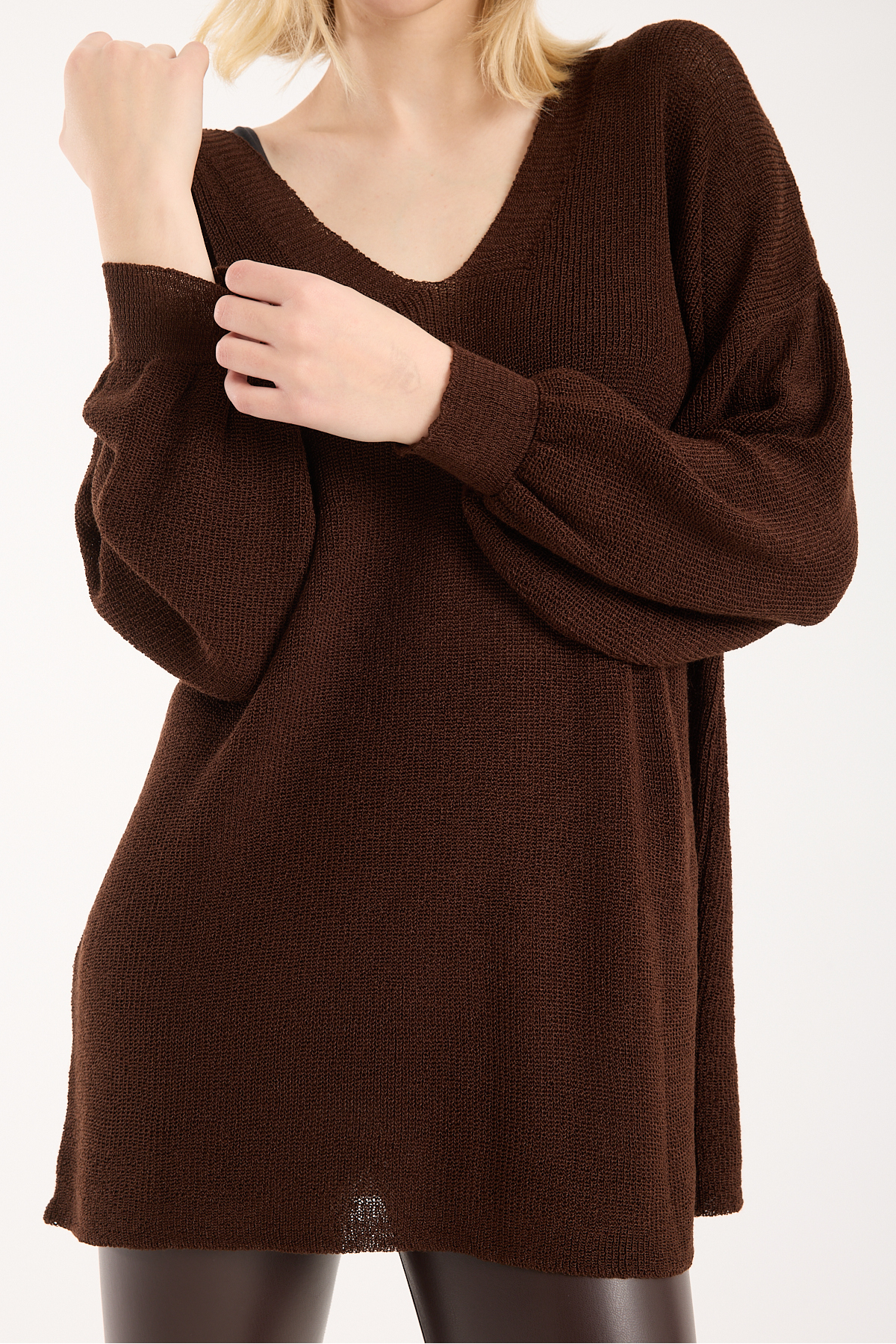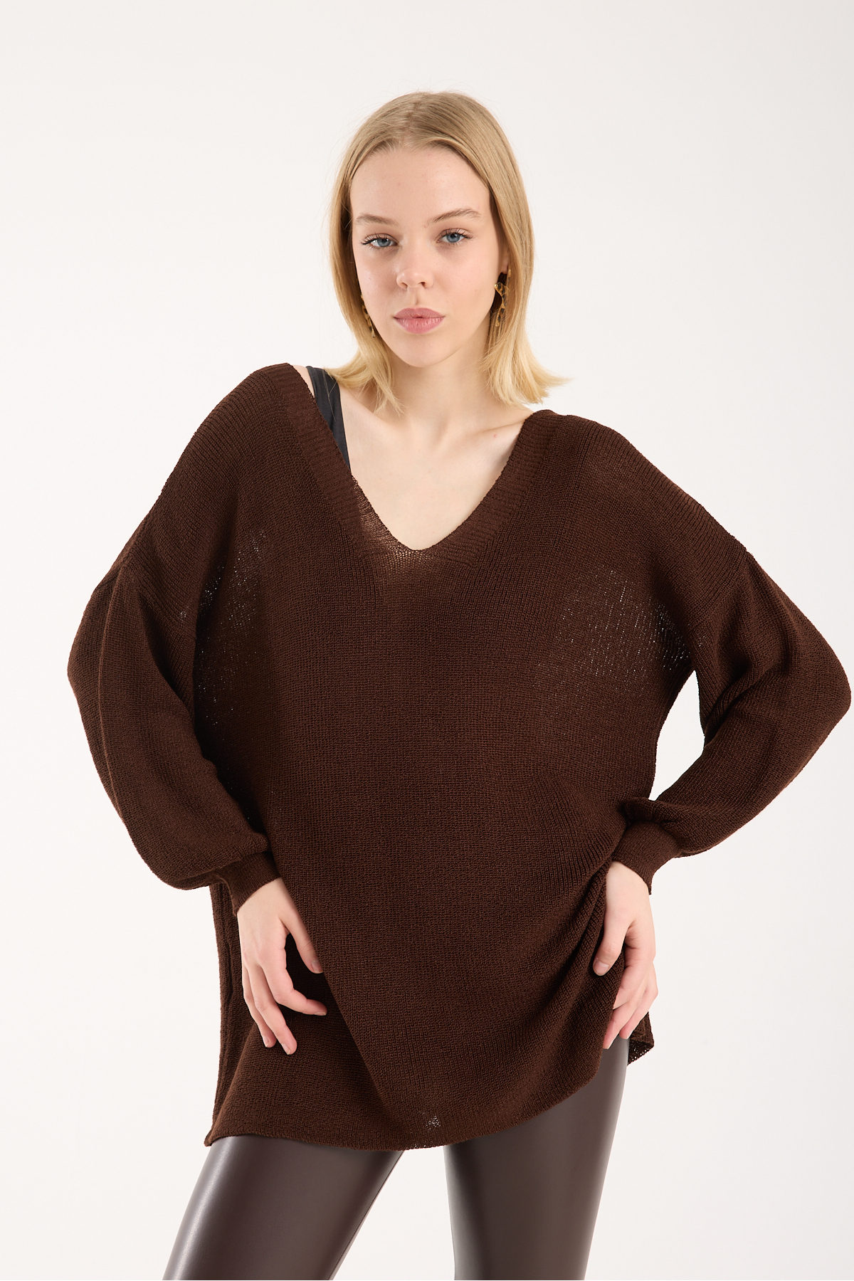 Yumoş ip oversize kadın kazak geniş yaka